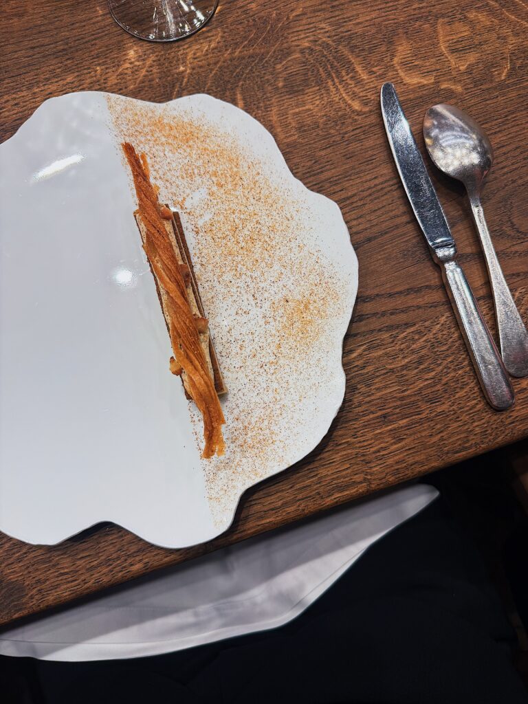 Au dessert, Lucile Vigilant propose une pâtisserie juste et mesurée : textures précises, saveurs lisibles, une fraîcheur qui clôt le repas sans lourdeur, comme une respiration d’hiver en Bourgogne, sensible et sans artifice gratuit.